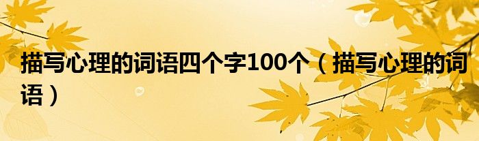 关于描写心理的词语四个字100个,描写心理的词语这个很多人还不知道,今天菲菲来为大家解答以上的问题,现在让我们一起来看看吧!