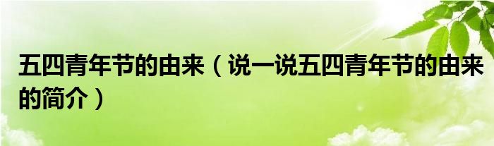 夏弥来为大家解答以下的问题,五四青年节的由来,说一说五四青年节的由来的简介,现在让我们一起来看看吧!