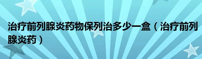 大家好,乐天来为大家解答以下的问题,治疗前列腺炎药物保列治多少一盒,治疗前列腺炎药很多人还不知道,现在让我们一起来看看吧!