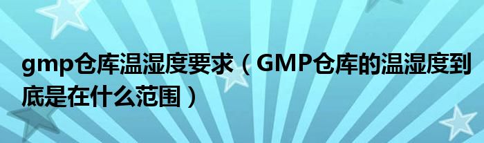 关于gmp仓库温湿度要求,GMP仓库的温湿度到底是在什么范围这个很多人还不知道,今天菲菲来为大家解答以上的问题,现在让我们一起来看看吧!