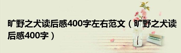 关于旷野之犬读后感400字左右范文,旷野之犬读后感400字这个很多人还不知道,今天菲菲来为大家解答以上的问题,现在让我们一起来看看吧!