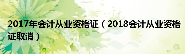 大家好,小联来为大家解答以上的问题。2017年会计从业资格证,2018会计从业资格证取消这个很多人还不知道,现在让我们一起来看看吧!
