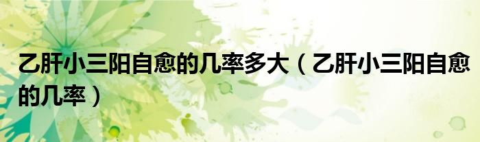 大家好,乐天来为大家解答以下的问题,乙肝小三阳自愈的几率多大,乙肝小三阳自愈的几率很多人还不知道,现在让我们一起来看看吧!