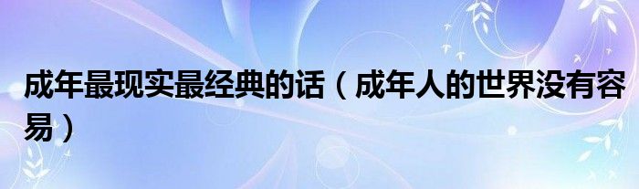 大家好,我是小科,我来为大家解答以上问题。成年最现实最经典的话,成年人的世界没有容易很多人还不知道,现在让我们一起来看看吧!