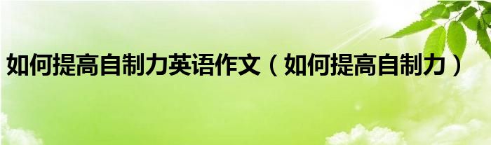 大家好,小晋来为大家解答以下问题,关于如何提高自制力英语作文,如何提高自制力很多人还不知道,今天让我们一起来看看吧!