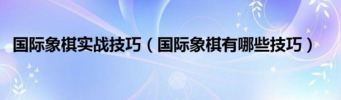 关于国际象棋实战技巧,国际象棋有哪些技巧这个很多人还不知道,今天菲菲来为大家解答以上的问题,现在让我们一起来看看吧!