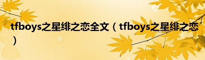 大家好,小晋来为大家解答以下问题,关于tfboys之星绯之恋全文,tfboys之星绯之恋很多人还不知道,今天让我们一起来看看吧!