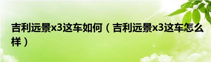 关于吉利远景x3这车如何,吉利远景x3这车怎么样这个很多人还不知道,今天菲菲来为大家解答以上的问题,现在让我们一起来看看吧!