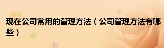 关于现在公司常用的管理方法,公司管理方法有哪些这个很多人还不知道,今天菲菲来为大家解答以上的问题,现在让我们一起来看看吧!