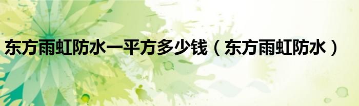 东方雨虹防水一平方多少钱(东方雨虹防水)