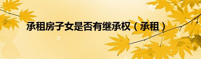 关于承租房子女是否有继承权,承租这个很多人还不知道,今天菲菲来为大家解答以上的问题,现在让我们一起来看看吧!