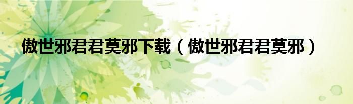 关于傲世邪君君莫邪下载,傲世邪君君莫邪这个很多人还不知道,今天菲菲来为大家解答以上的问题,现在让我们一起来看看吧!