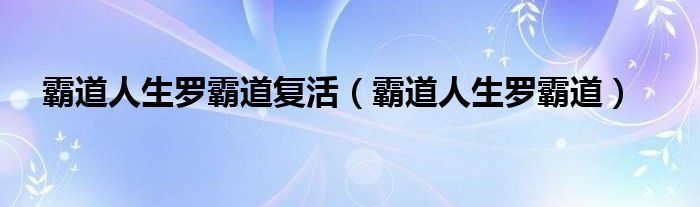 霸道人生罗霸道复活(霸道人生罗霸道)