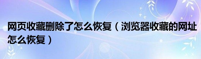 关于网页收藏删除了怎么恢复,浏览器收藏的网址怎么恢复这个很多人还不知道,今天菲菲来为大家解答以上的问题,现在让我们一起来看看吧!