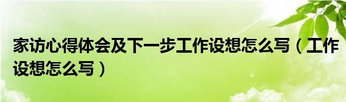 关于家访心得体会及下一步工作设想怎么写,工作设想怎么写这个很多人还不知道,今天菲菲来为大家解答以上的问题,现在让我们一起来看看吧!