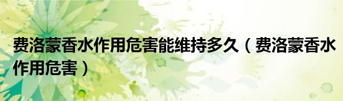 大家好,小晋来为大家解答以下问题,关于费洛蒙香水作用危害能维持多久,费洛蒙香水作用危害很多人还不知道,今天让我们一起来看看吧!