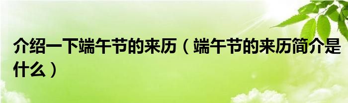 关于介绍一下端午节的来历,端午节的来历简介是什么这个很多人还不知道,今天菲菲来为大家解答以上的问题,现在让我们一起来看看吧!