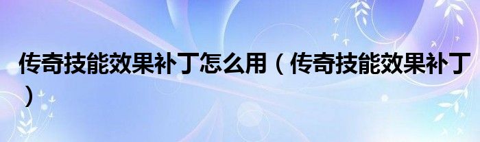 传奇技能效果补丁怎么用(传奇技能效果补丁)