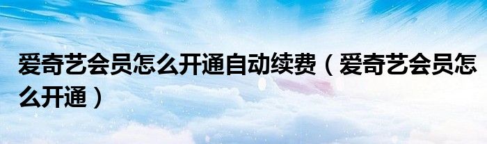 大家好,慧慧来为大家解答以上问题,爱奇艺会员怎么开通自动续费,爱奇艺会员怎么开通很多人还不知道,现在让我们一起来看看吧!