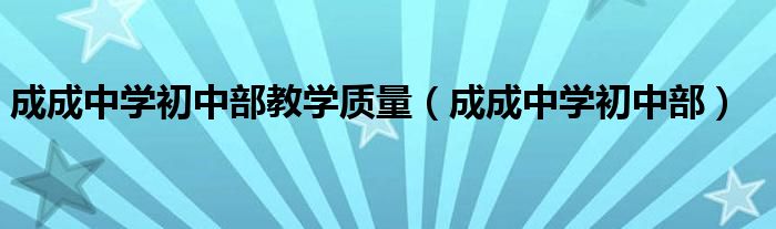 成成中学初中部教学质量,成成中学初中部这个很多人还不知道,小飞来为大家解答以上的问题。现在让我们一起来看看吧!