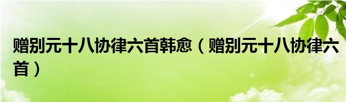 赠别元十八协律六首韩愈(赠别元十八协律六首)