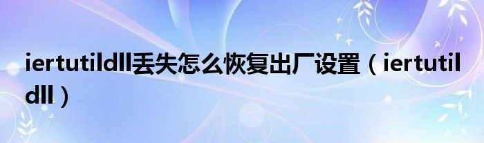 大家好,慧慧来为大家解答以上问题,iertutildll丢失怎么恢复出厂设置,iertutil dll很多人还不知道,现在让我们一起来看看吧!
