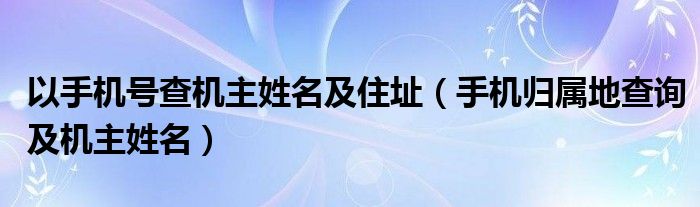 大家好,慧慧来为大家解答以上问题,以手机号查机主姓名及住址,手机归属地查询及机主姓名很多人还不知道,现在让我们一起来看看吧!
