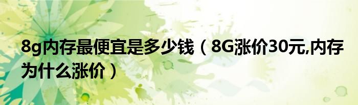 大家好,小常来为大家解答以上问题。8g内存最便宜是多少钱,8G涨价30元,内存为什么涨价很多人还不知道,现在让我们一起来看看吧!