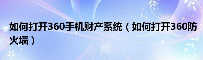 大家好,今天小悦来为大家解答以上问题。如何打开360手机财产系统,如何打开360防火墙很多人还不知道,现在让我们一起来看看吧!