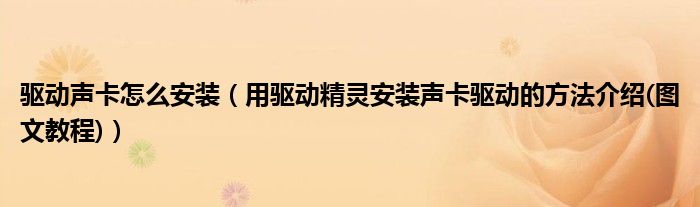 驱动声卡怎么安装(用驱动精灵安装声卡驱动的方法介绍(图文教程))