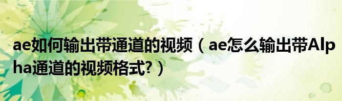 大家好,今天小悦来为大家解答以上问题。ae如何输出带通道的视频,ae怎么输出带Alpha通道的视频格式?很多人还不知道,现在让我们一起来看看吧!