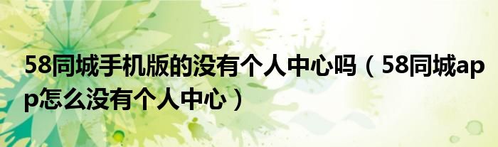 大家好,跳跳为你解答以上问题。58同城手机版的没有个人中心吗,58同城app怎么没有个人中心这个问题很多人还不知道,现在让我们一起来看看吧!