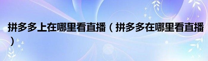 大家好,跳跳为你解答以上问题。拼多多上在哪里看直播,拼多多在哪里看直播这个问题很多人还不知道,现在让我们一起来看看吧!