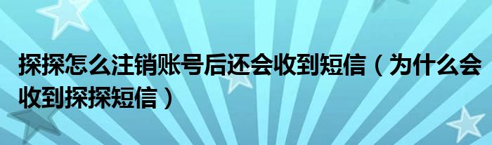 大家好,跳跳为你解答以上问题。探探怎么注销账号后还会收到短信,为什么会收到探探短信这个问题很多人还不知道,现在让我们一起来看看吧!
