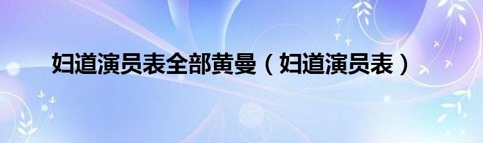大家好,小晋来为大家解答以下问题,关于妇道演员表全部黄曼,妇道演员表很多人还不知道,今天让我们一起来看看吧!