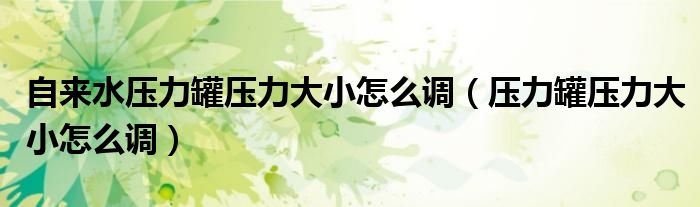 大家好,小晋来为大家解答以下问题,关于自来水压力罐压力大小怎么调,压力罐压力大小怎么调很多人还不知道,今天让我们一起来看看吧!