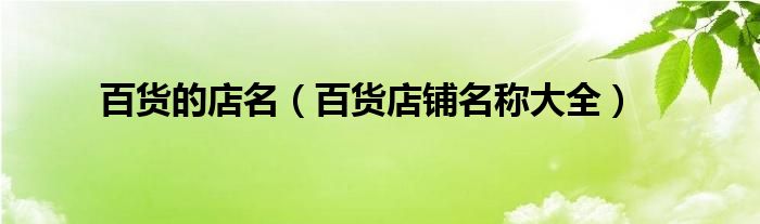 关于百货的店名,百货店铺名称大全这个很多人还不知道,今天菲菲来为大家解答以上的问题,现在让我们一起来看看吧!