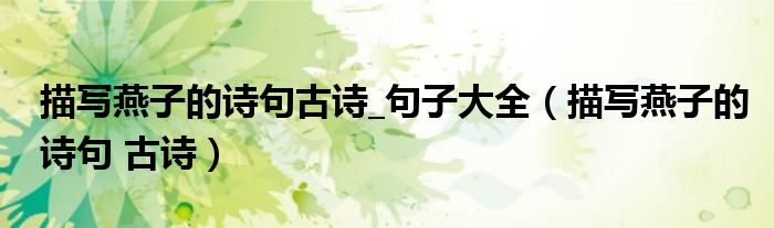 大家好,小晋来为大家解答以下问题,关于描写燕子的诗句古诗_句子大全,描写燕子的诗句 古诗很多人还不知道,今天让我们一起来看看吧!