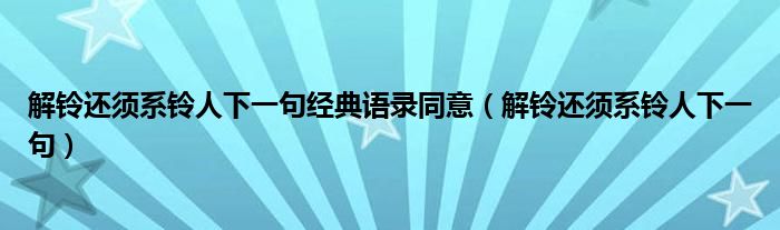 大家好,小晋来为大家解答以下问题,关于解铃还须系铃人下一句经典语录同意,解铃还须系铃人下一句很多人还不知道,今天让我们一起来看看吧!