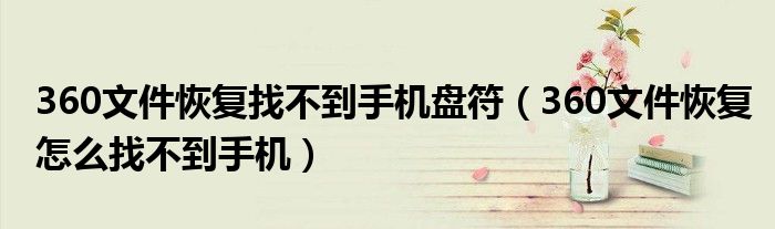 360文件恢复找不到手机盘符(360文件恢复怎么找不到手机)