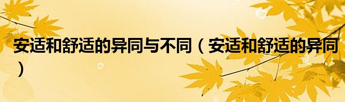 关于安适和舒适的异同与不同,安适和舒适的异同这个很多人还不知道,今天菲菲来为大家解答以上的问题,现在让我们一起来看看吧!