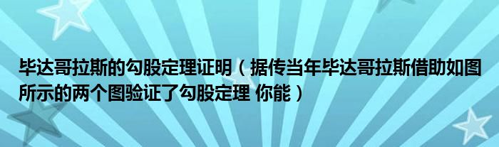 关于毕达哥拉斯的勾股定理证明,据传当年毕达哥拉斯借助如图所示的两个图验证了勾股定理 你能这个很多人还不知道,今天菲菲来为大家解答以上的问题,现在让我们一起来看看吧!