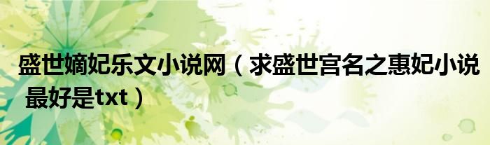 关于盛世嫡妃乐文小说网,求盛世宫名之惠妃小说 最好是txt这个很多人还不知道,今天菲菲来为大家解答以上的问题,现在让我们一起来看看吧!