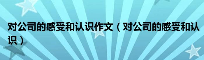 关于对公司的感受和认识作文,对公司的感受和认识这个很多人还不知道,今天菲菲来为大家解答以上的问题,现在让我们一起来看看吧!