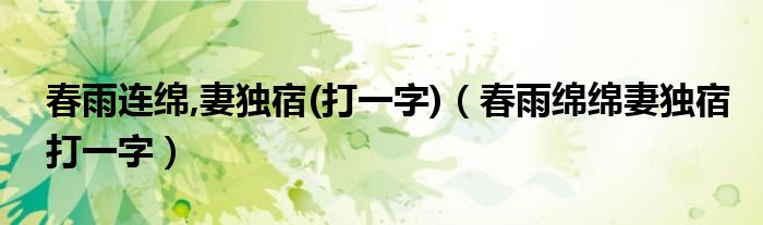 关于春雨连绵,妻独宿(打一字),春雨绵绵妻独宿打一字这个很多人还不知道,今天菲菲来为大家解答以上的问题,现在让我们一起来看看吧!