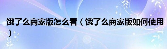 饿了么商家版怎么看(饿了么商家版如何使用)