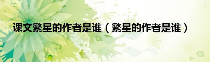 大家好,小晋来为大家解答以下问题,关于课文繁星的作者是谁,繁星的作者是谁很多人还不知道,今天让我们一起来看看吧!