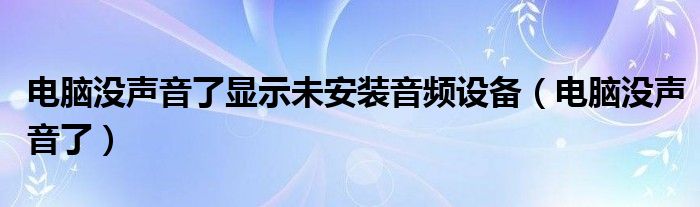 大家好,来宝来为大家解答以下问题,电脑没声音了显示未安装音频设备,电脑没声音了很多人还不知道,今天让我们一起来看看吧!