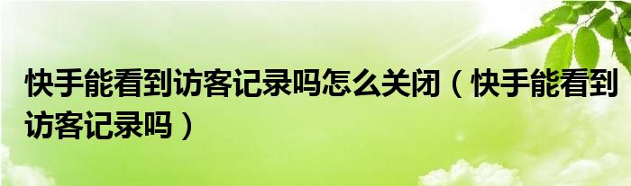 大家好,小晋来为大家解答以下问题,关于快手能看到访客记录吗怎么关闭,快手能看到访客记录吗很多人还不知道,今天让我们一起来看看吧!