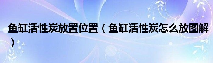 大家好,小晋来为大家解答以下问题,关于鱼缸活性炭放置位置,鱼缸活性炭怎么放图解很多人还不知道,今天让我们一起来看看吧!